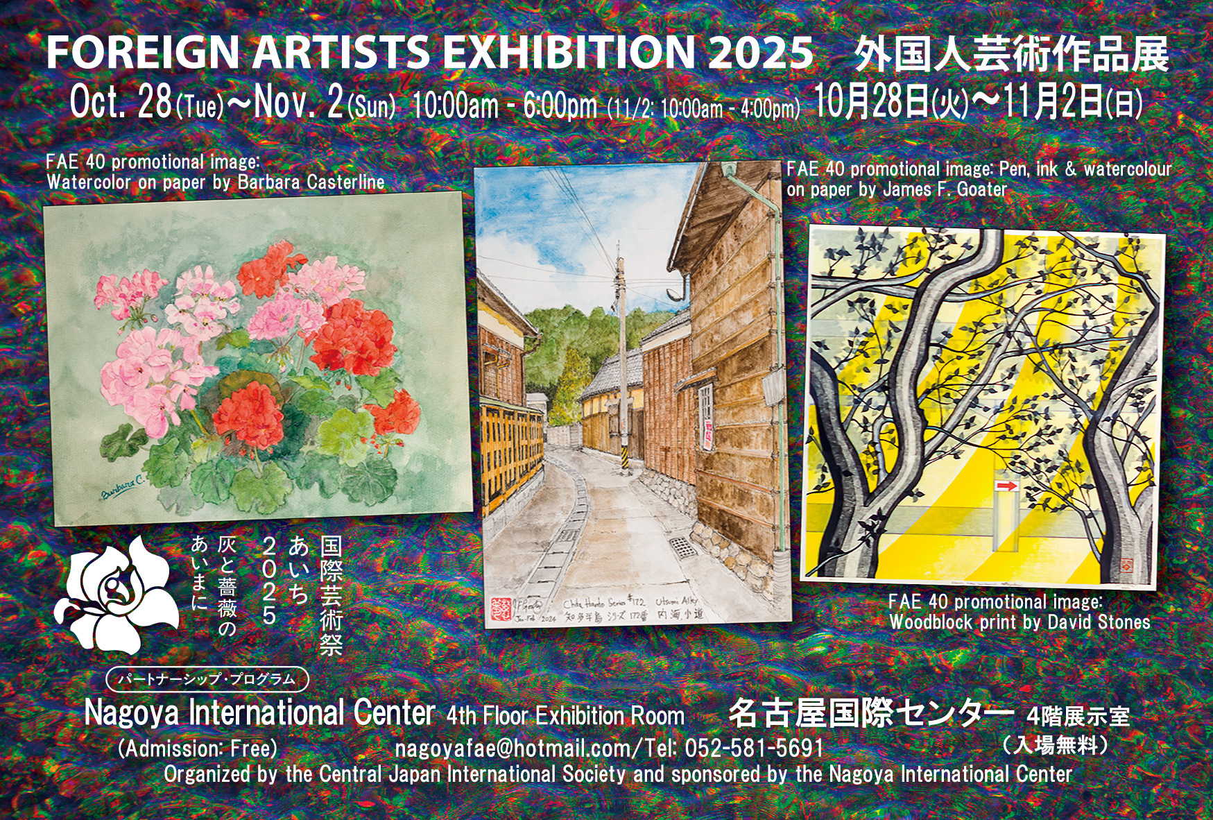 Don't miss this year's exhibition of artwork (paintings and drawings, photography, handcrafts, and more) by foreign residents of the Chubu region. It's celebrating 40th anniversary this year!