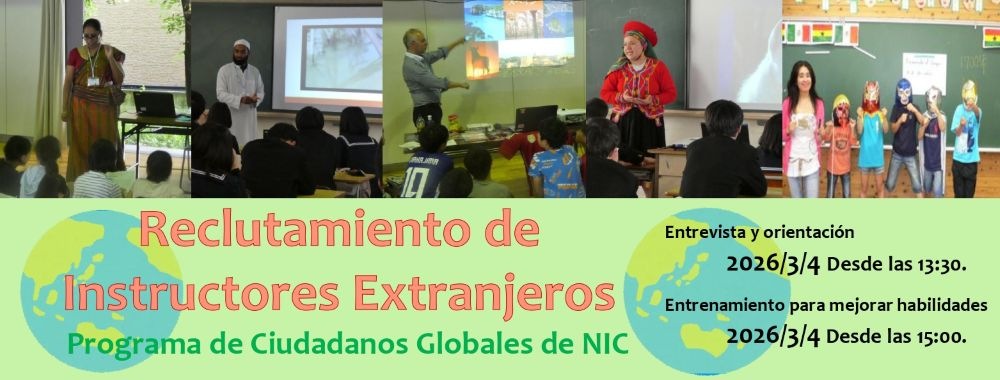 - Reclutamiento de instructores para las "Clases de Ciudadano Global de NIC / NIC Chikyu Shimin Kyoushitsu"(NIC地球市民教室 講師募集)