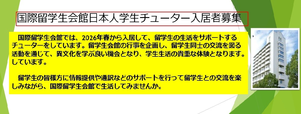 - 国際留学生会館日本人学生チューター募集
