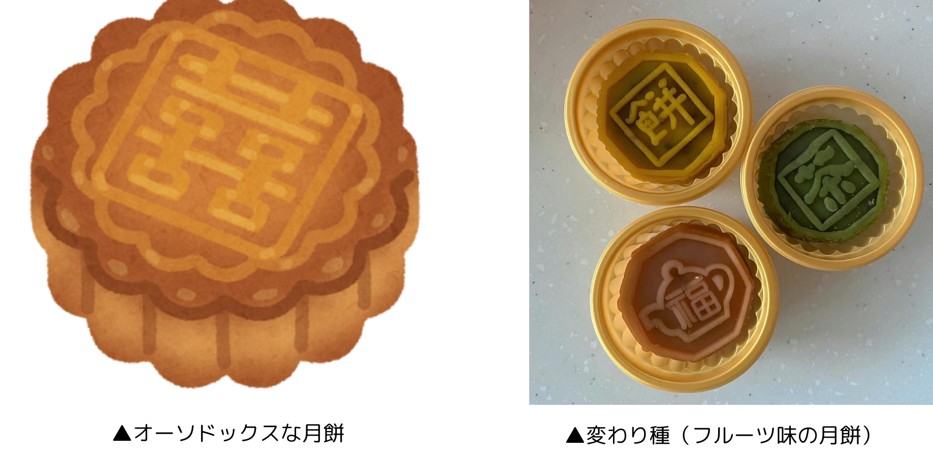 また、中国のお土産としてポピュラーなのでご存じの方も多いと思いますが、月餅(げっぺい)は中秋節には欠かせません!