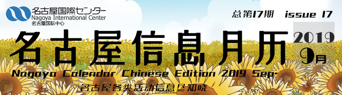 名古屋信息月历 2019年9月号-名古屋信息月历 下载(9月号ナゴヤカレンダー中国語版ダウンロード) 2019.08.23 下载 (PDF资料约 1.9 MB) 英语版/葡萄牙语版 请您关注NIC的twitter和Facebook!也期待您订阅邮件杂志,将会刊登每月的活动和新闻。 回到一览表