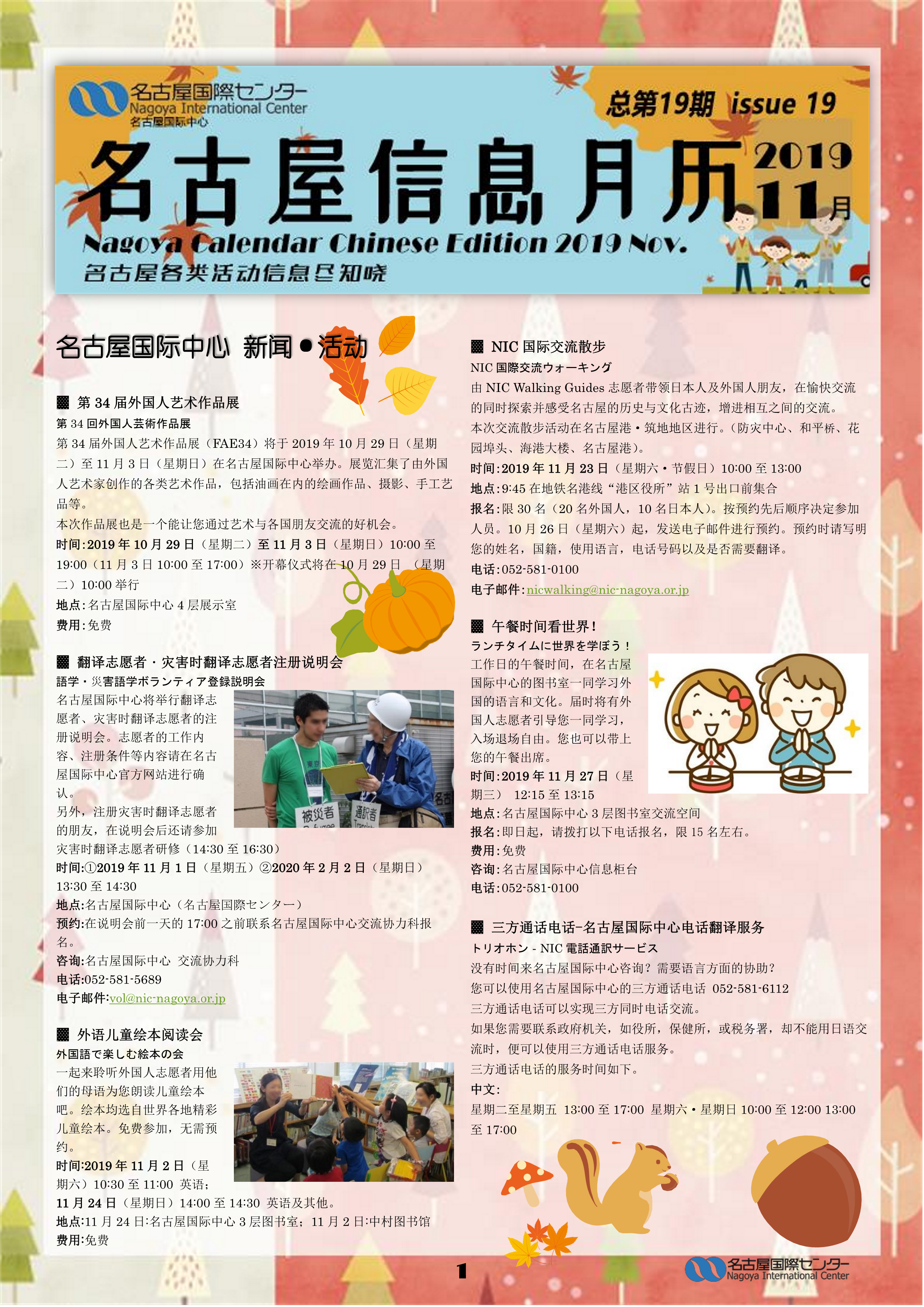 名古屋信息月历 2019年11月号-名古屋信息月历 下载(11月号ナゴヤカレンダー中国語版ダウンロード) 2019.10.27 下载 (PDF资料约 1.5 MB) 英语版/葡萄牙语版 请您关注NIC的twitter和Facebook!也期待您订阅邮件杂志,将会刊登每月的活动和新闻。 回到一览表